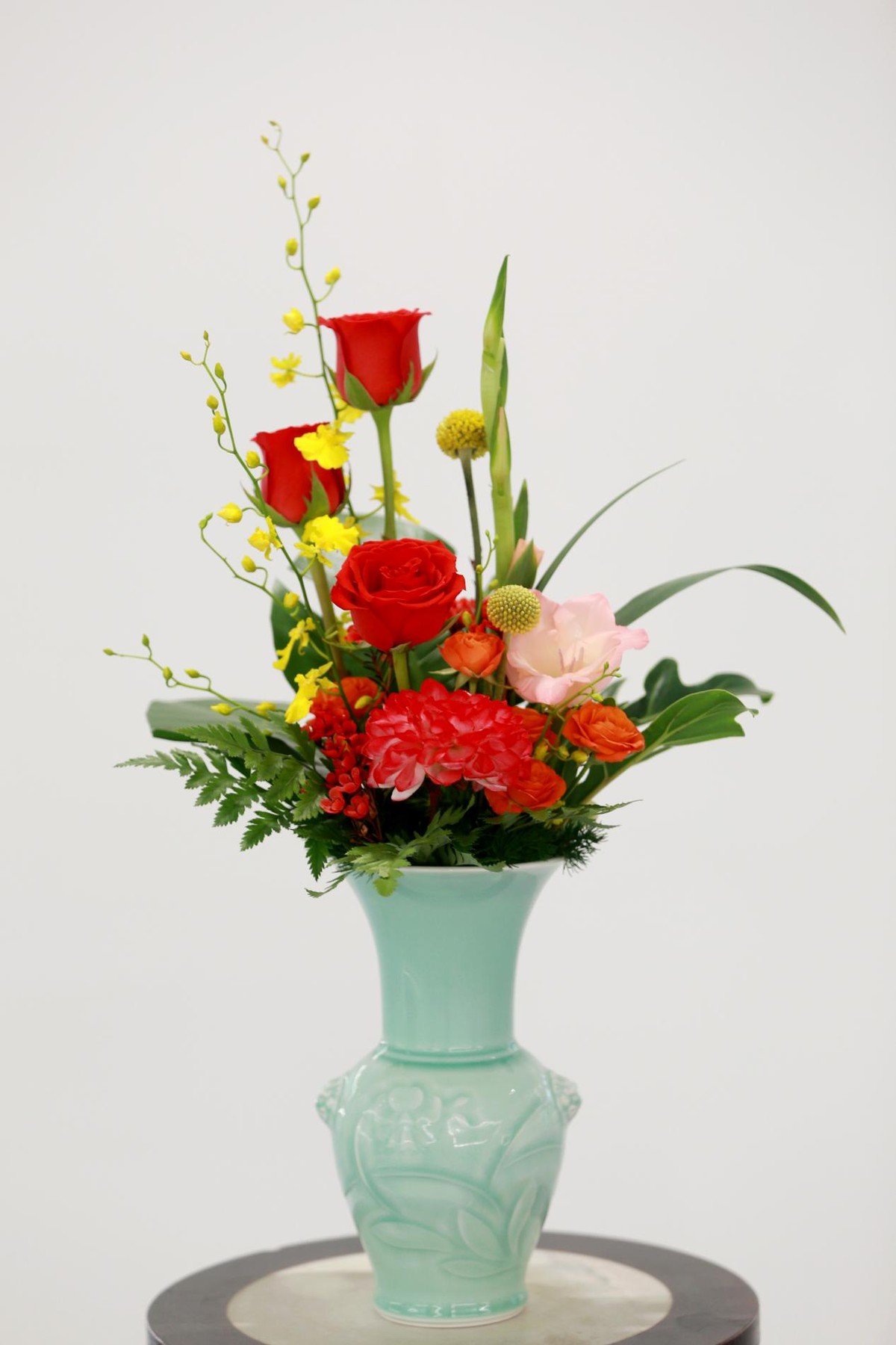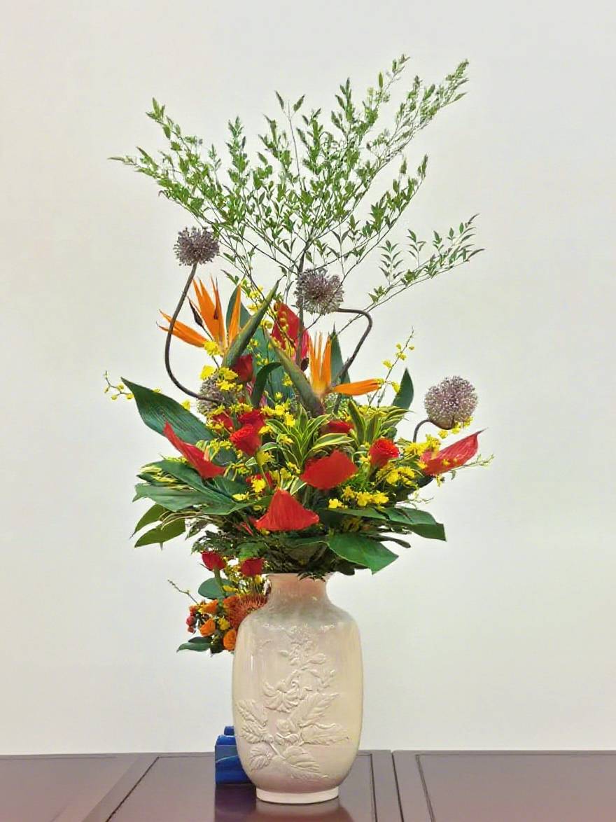 由丰台区龙头企业花乡花木集团设计的《和毅·英华长歌》《和光·启新程》《和瑞·盛世腾翔》《盛世·长歌》四件插花作品,亮相现场,为活动营造了浓厚的艺术氛围。